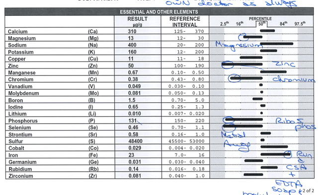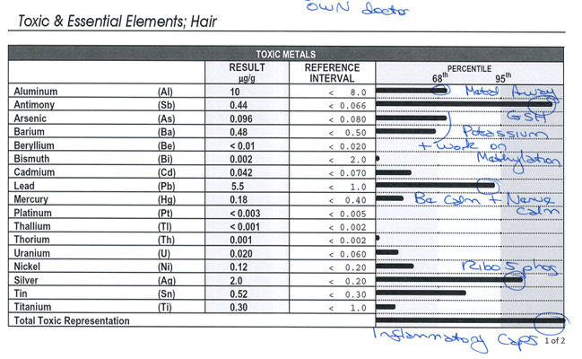 Представяме ви снимки от лабораторните резултати на един наш малък пациент преди и след децинтоксикацията, която в случаят протече на 2 етапа, защото някои тежки метали не се прихващат от стандартните хелатори, които се употребяват в момента.